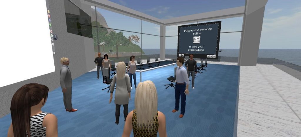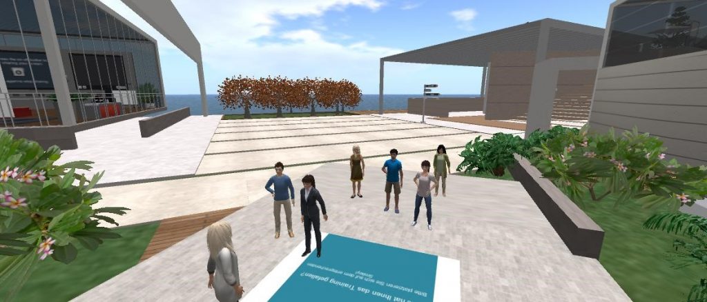 Eine Lernumgebung, die sich als eine computergestützte webbasierte Umgebung darstellt, ermöglicht ein Immersionserleben, welches durch die Begegnung der Teilnehmenden in Form von Avataren und deren selbstständigem Handeln in der Umgebung erzeugt wird.