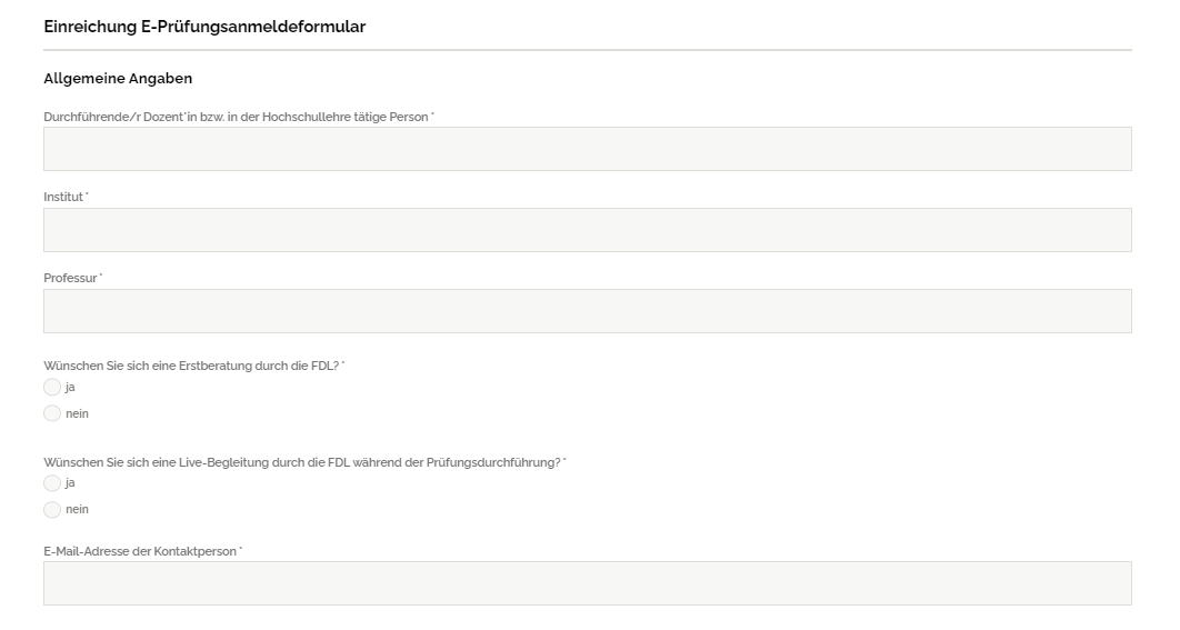 Damit E-Prüfungen an der PH FHNW bestmöglich vorbereitet sind und begleitet werden können, muss bis zum 13.03.2022 (KW 10), das PH FHNW Anmeldeformular für E-Prüfungen, bei der Fachstelle Digitales Lehren und Lernen (FDL), eingereicht werden. Das Anmeldeformular ist unter folgendem Link hinterlegt.