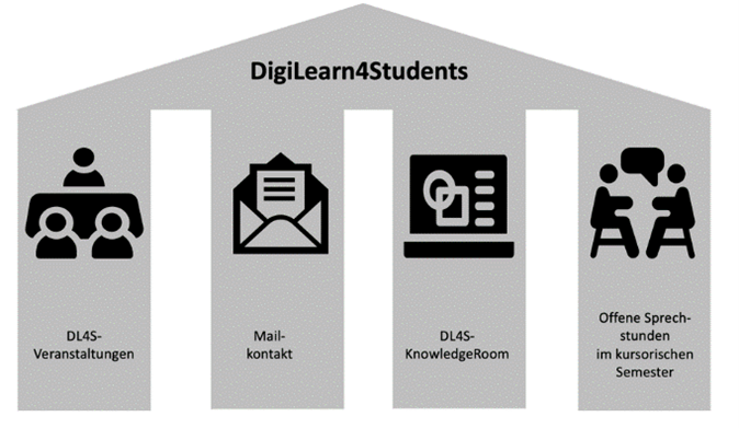 Abb. 2: Dreigliedrieges DigiLearn4Students-Angebot, eigene Darstellung, 2023.