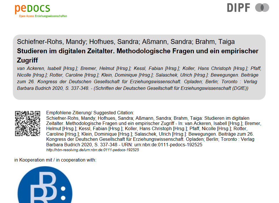 Schiefner-Rohs, M.; Hofhues, S.; Aßmann, S.; Brahm, T. (2020)