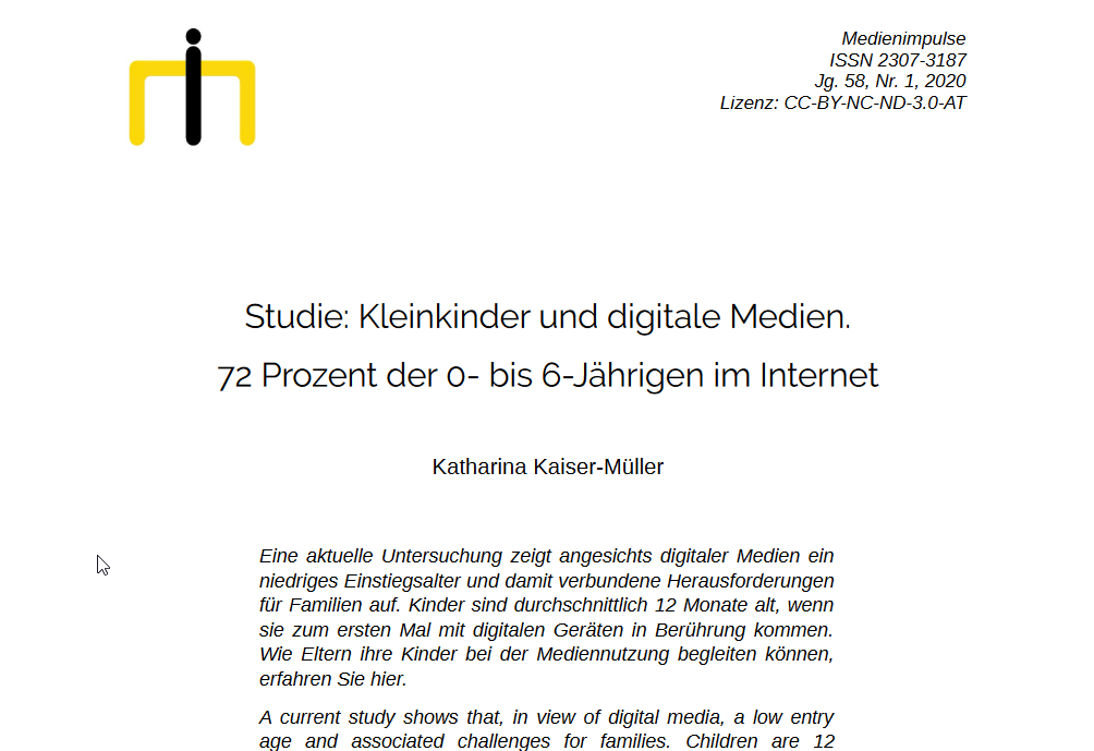 MIKE-Studie – Medien, Interaktion, Kinder und Eltern: Ergebnisbericht zur MIKE-Studie 2019.