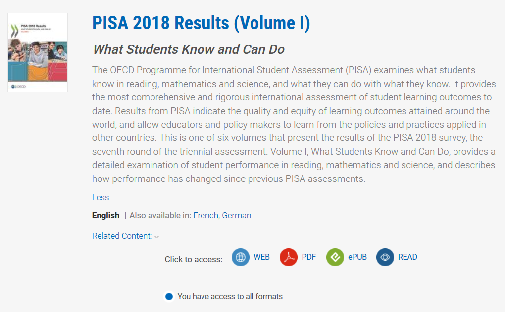 PISA 2018 Results (Volume I): What Students Know and Can Do